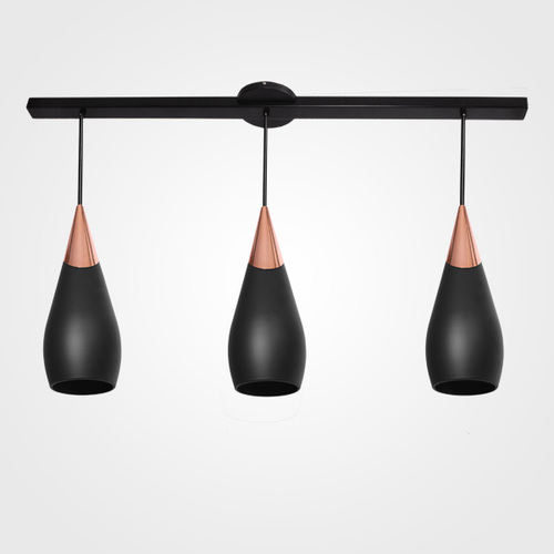 Fabricado en acero negro, sus campanas son un atractivo visual que se complementa con un sofisticado detalle en acabado de cobre cepillado. La base metálica de 80 cm y el cable negro permiten una instalación sencilla y estilizada, mientras que su capacidad para ser montado en el techo lo hace ideal para espacios contemporáneos.
