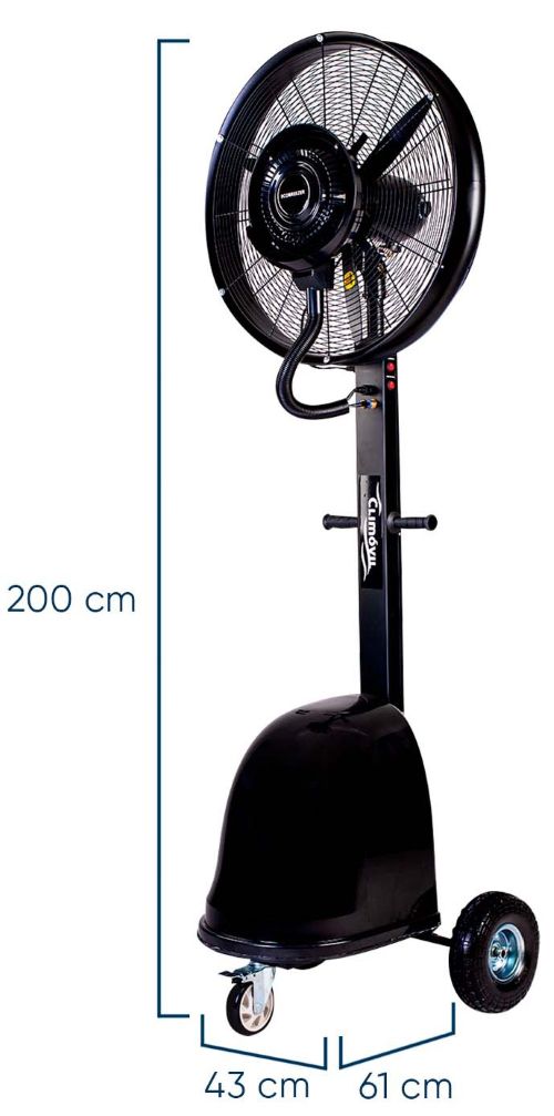 El ECOBREEZER es un avanzado sistema de nebulización diseñado para proporcionar un flujo de aire fresco y humidificado, convirtiéndose en la solución perfecta para climas cálidos y secos. Con un potente motor de 260 W y tres velocidades, garantiza un flujo de aire de 145 m³/min, asegurando una distribución eficiente del aire en áreas grandes.