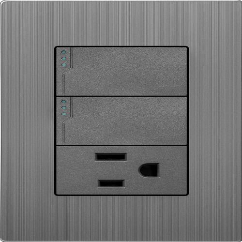 Sus características incluyen una capacidad de 16A a 250V~ con una frecuencia de 60Hz, convirtiéndola en una elección ideal para uso residencial y comercial. El color Steel Gray de la placa y el grafito de los receptáculos aportan un toque contemporáneo que se adapta a cualquier decoración.