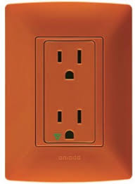 La Toma de Corriente Dúplex es de color naranja, facilitando la identificación visual gracias a su triángulo verde de seguridad. Esta toma es ideal para su uso en entornos donde se requieren conexiones eléctricas seguras, siendo perfecta para hogares y oficinas.